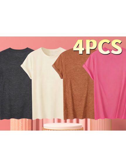 Plus Size – Plus Size – Set of 4 Plus Size Women’S Casual T-Shirts in Vibrant Colors with Crew Neck And Short Sleeves