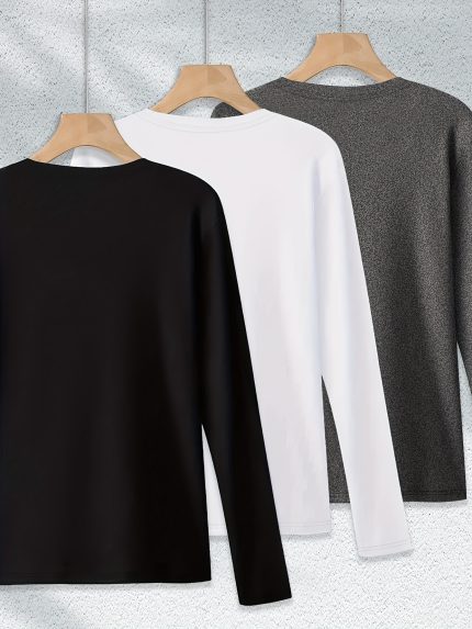 Plus Size – Plus Size – Women’S Casual Solid Color Long Sleeve T-Shirt 3pcs Set