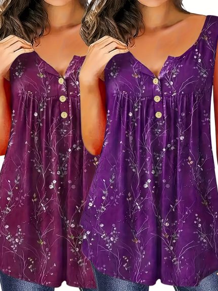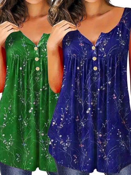 Plus Size, 2pcs Plus Size V-Neck Sleeveless Pleated Fashionable Breathable Camisole for Women Casual Summer