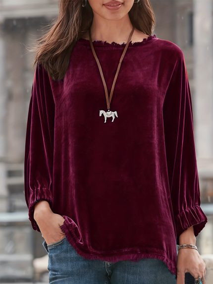 Plus Size, Plus Size Women’s Velvet Loose Fit Top
