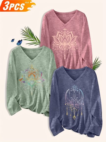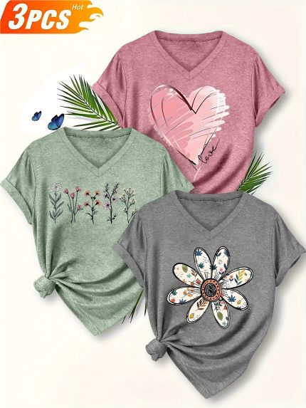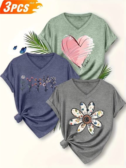 Plus Size, Versatile T-Shirt 3pcs Set: Springu002FSummer New Arrival Plus Size Women’s Fashion Print