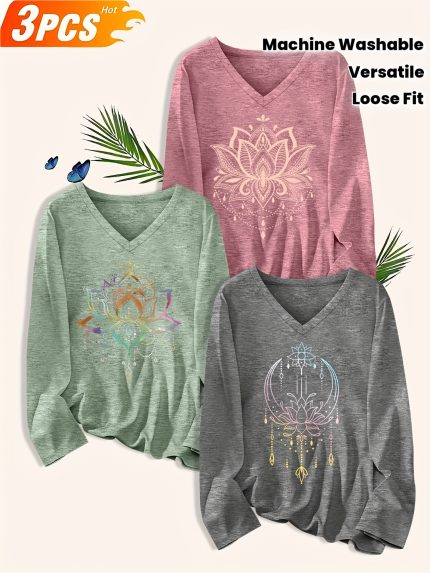 Plus Size, Versatile T-Shirt 3pcs Set – Plus Size Women’s Fashion Letter Print Casual V-Neck T-Shirt 3pcs Set. The Fabric Is Soft and Gentle on the Skin, Made from a Rayon-viscose – Soft, Easy to Care for, and Machine Washable. Suitable for Lounging