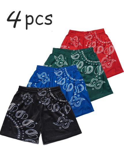 Set of 4 Men’S Mesh Casual Sports Shorts, Basketball Shorts, Fitness Shorts, Outdoor Sports Shorts