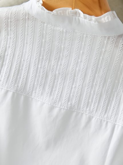 Plus Size, Plus Size Women’s Top, New Elegant Minimalist Solid Color Long Sleeve Stand Collar Design Top